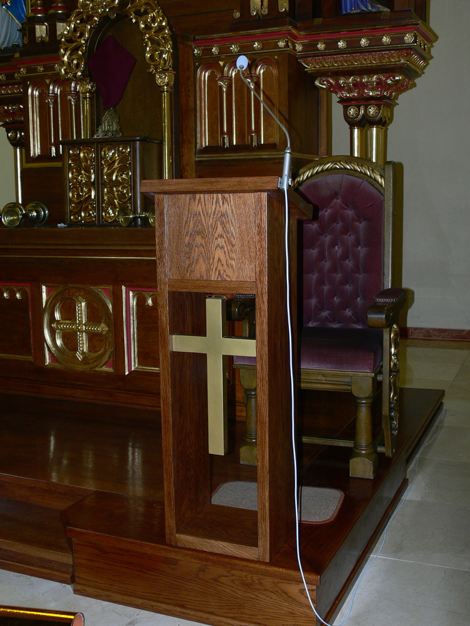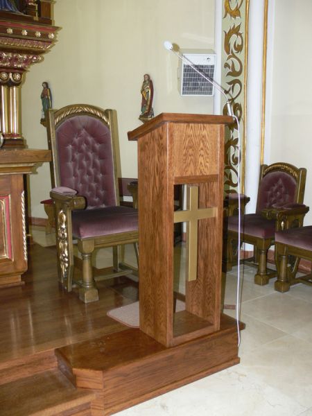 W naszym kościele, pojawił się w prezbiterium dodatkowy "mebel", którym jest pulpit ustawiony tuż przed krzesłem przewodniczącego liturgii. Aby poznać rolę i powód wprowadzenia dodatkowego pulpitu w przestrzeń prezbiterium trzeba sięgnąć do zbioru przepisów i norm dotyczących sprawowania Eucharystii, czyli Ogólnego wprowadzenia do Mszału Rzymskiego.